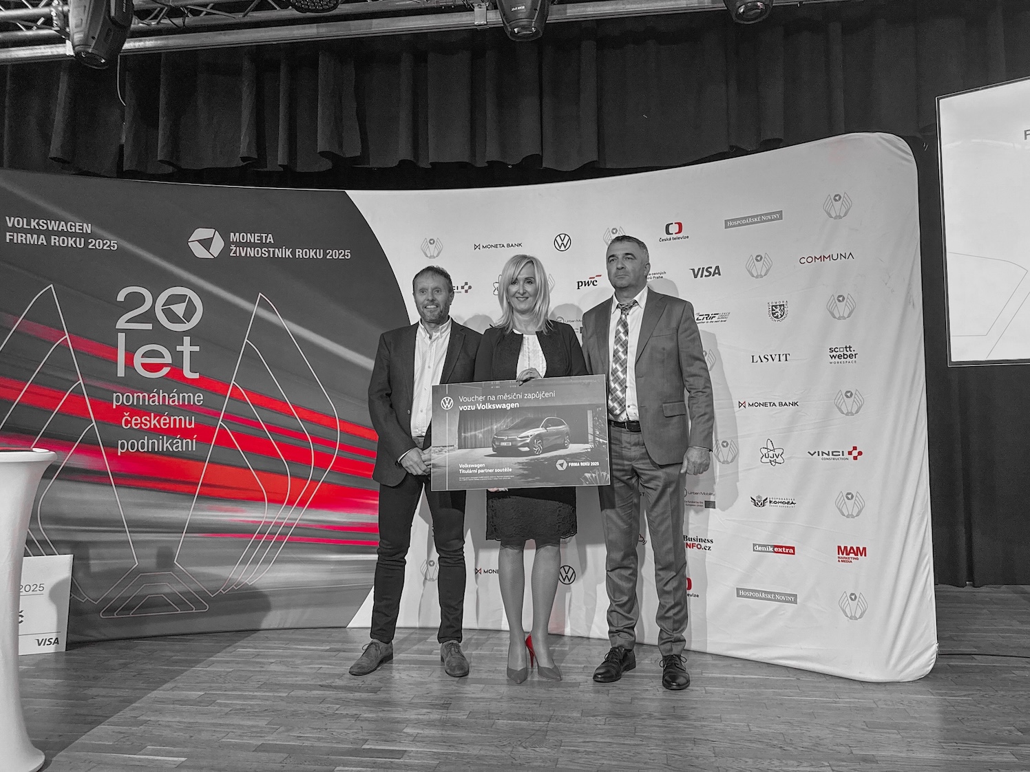 I letos jsme se zapojili do prestižní soutěže Volkswagen Firma roku 2025, která oceňuje podnikatelské příběhy, inovace a přínos firem pro region. A my jsme získali stříbrnou příčku.
